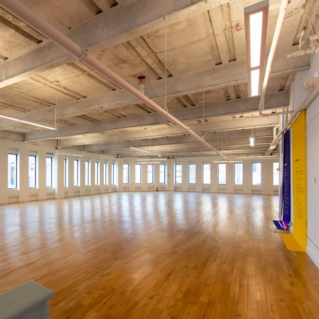 Welcome to the 29th floor of a classic building on the southern tip of Manhattan, a bright and beautiful, expansive space with hardwood floors, a mix of white walls and colorful accents, and gobs of natural light spilling in. The entire 29th floor is ready for your event! Welcome to 85 Broad.