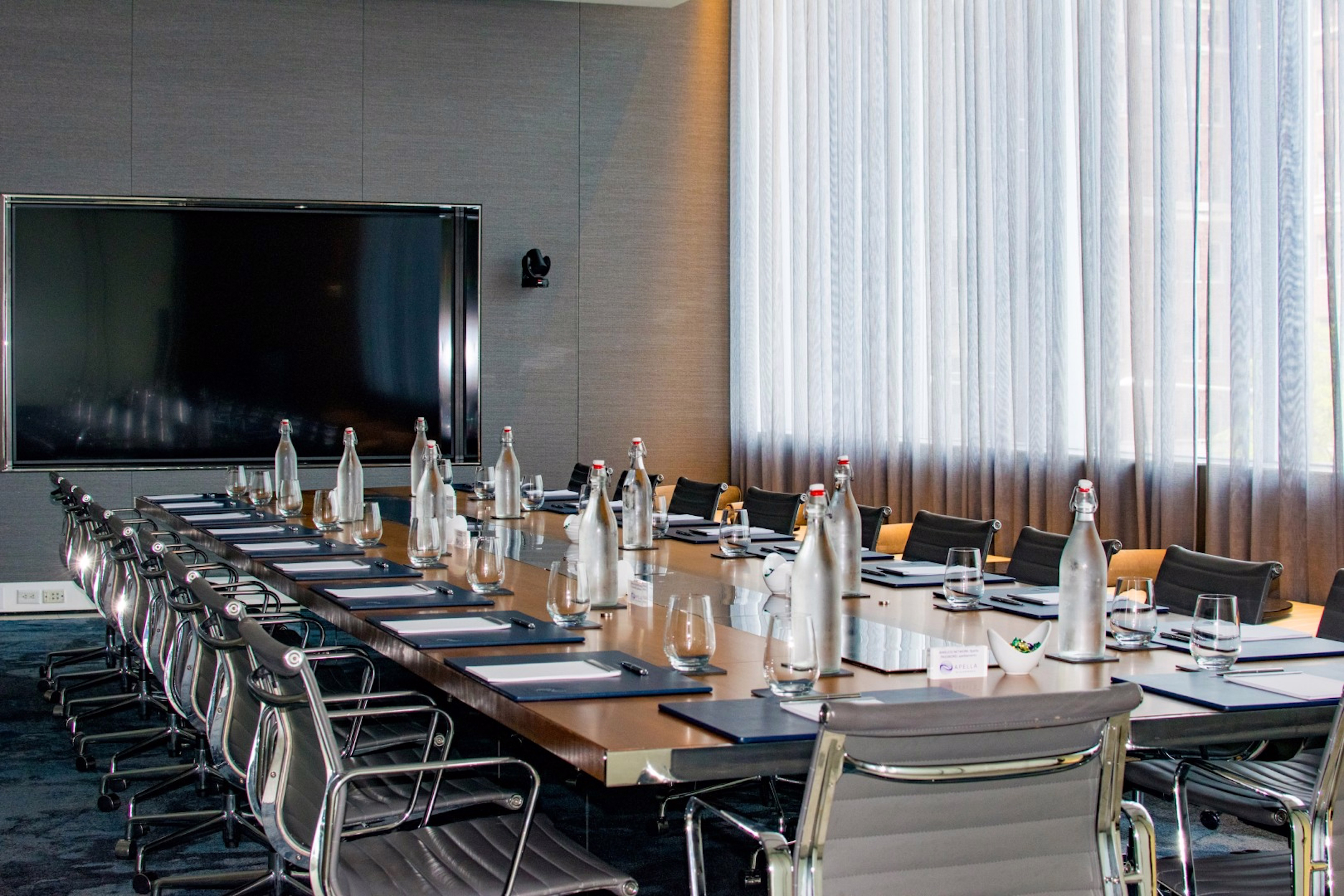 Apella 101 is a stunning executive boardroom suite. Apella 101 can accommodate up to 16 people seated at the boardroom table. Oversized windows provide a wall of generous natural light.